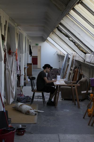 kreide komma kohle: Einer redet dem anderen ein, was dieser sich vorzustellen und zu Grundlage seines Werks zu machen hat. Malerei, Druck und Collagen entstehen als ein mediales Gemisch und zeigen Vorstellungen eines Anderen; eines Künstlers im und hinter dem Künstler.